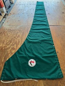 New Mansail Cover built in Forest Green Sunbrella, 11.2′ overall length, 41″ height
