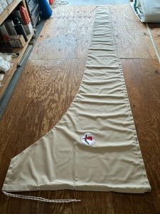 New mainsail cover builtin Linen Sunbrella, overall length 13′ 6″, height 48″