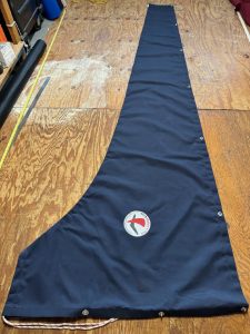 New Mainsail Cover built in Navy Sunbrella, overall length 11.2′, height 42″